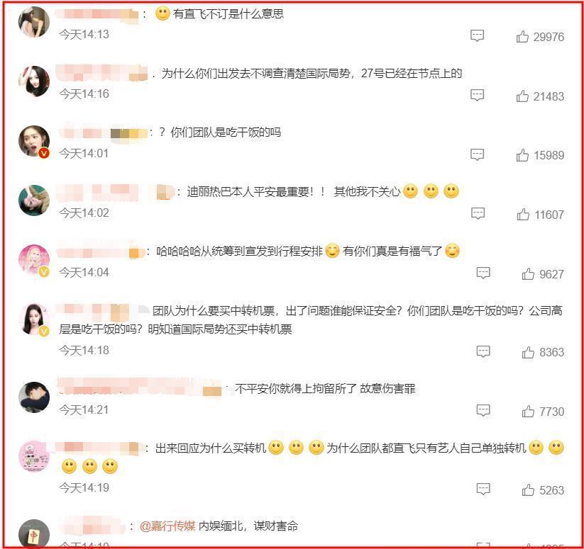 迪丽热巴的粉丝大骂经纪公司谋财害命,质问经纪公司为什么不关注国际形势?质问明明可以直达,为什么要从迪拜转机?
