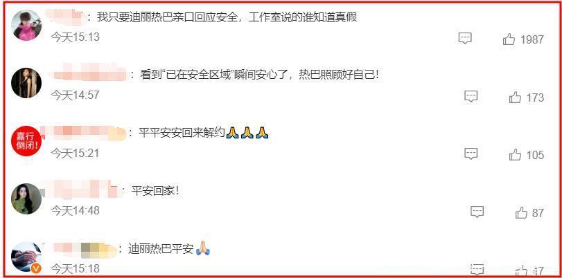 他们很关心迪丽热巴的安危。