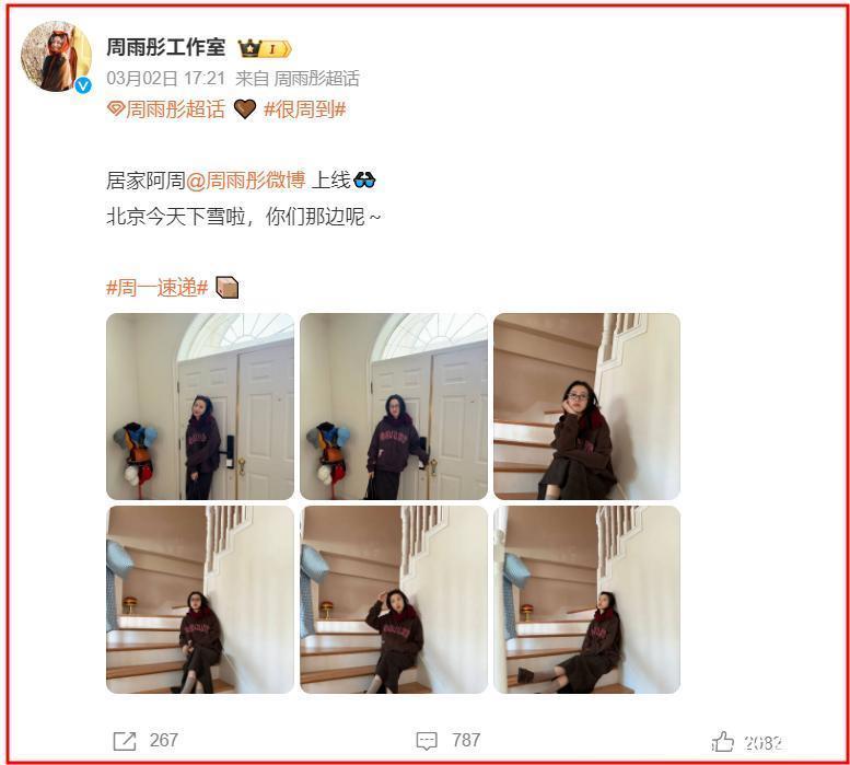 随着3月2日傍晚,周雨彤工作室晒出周雨彤在北京居家的照片,粉丝们才彻底放心。